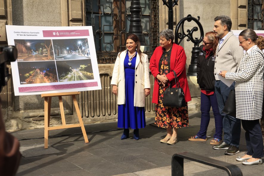 La titular del Ejecutivo local señaló que la estrategia de iluminación del Centro Histórico se coloca como una de las más importantes, ya que en unos meses el primer cuadro de la capital estará pletórico y lleno de cientos de miles de visitantes, por el Mundial de Fútbol 2026.