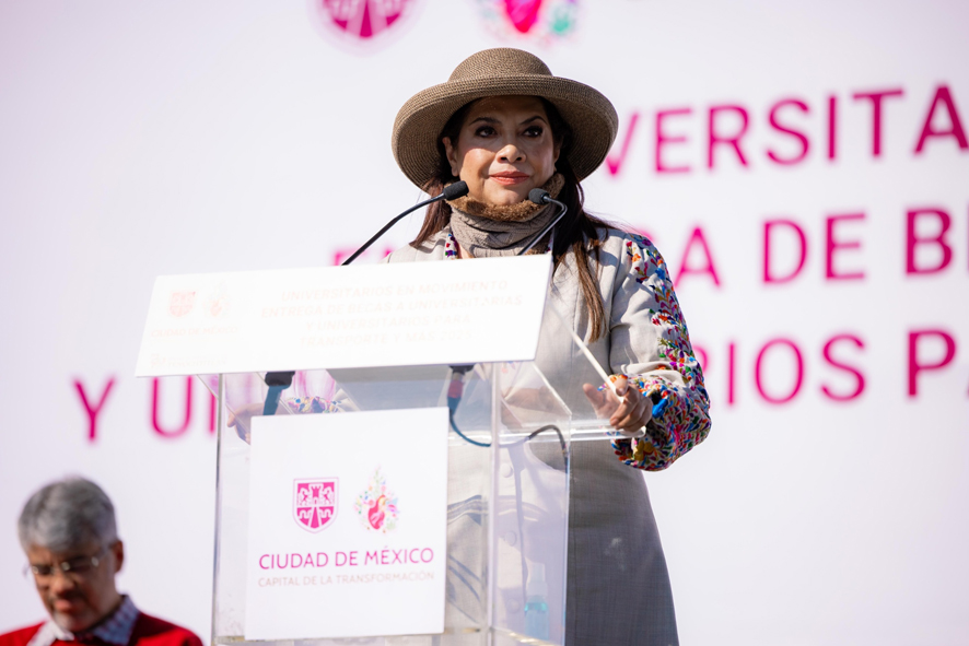 La Jefa de Gobierno, Clara Brugada Molina, encabezó en el Zócalo capitalino la entrega, matutina y vespertina, de apoyos del programa Beca a Universitarias y Universitarios para Transporte y Más de escuelas públicas, estrategia que calificó como verdaderamente universal, dirigida a todas y todos los estudiantes que cumplan con dos requisitos: estudiar en una institución pública de nivel superior y vivir en la Ciudad de México.
