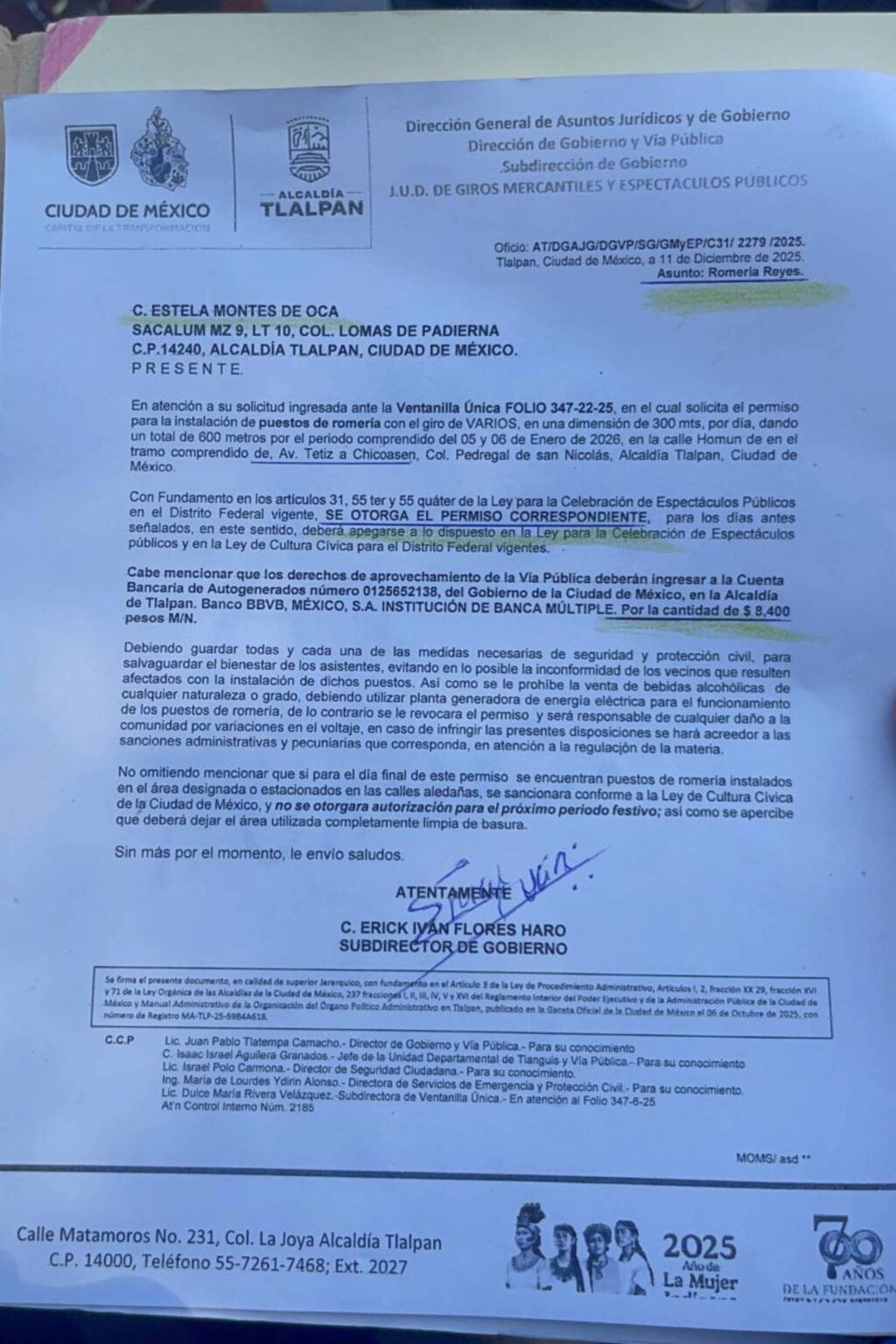La lideresa de comercio en vía pública Estela Montes de Oca González denunció públicamente actos de corrupción, abuso de autoridad, incumplimiento de acuerdos oficiales, el despojo ilegal de espacios de trabajo y traición política por parte del director de Gobierno y Vía Pública de la Alcaldía Tlalpan, Juan Pablo Tlatempa, así como la omisión y falta de respuesta de la titular de la demarcación, Gabriela Osorio, al no respetar un permiso formalmente otorgado para la instalación de la romería en la calle Homún, entre Tetiz y Chicoasén, en la colonia Pedregal de San Nicolás.