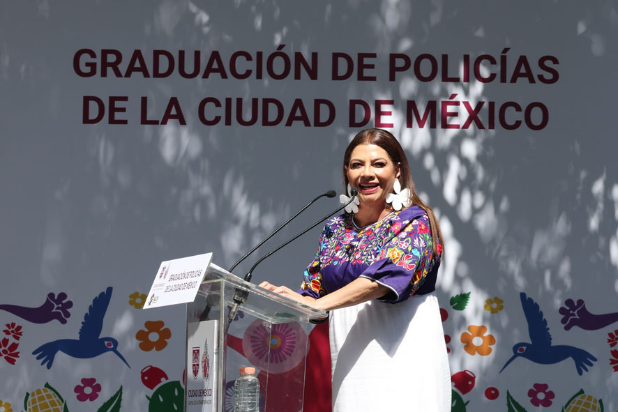 Desde el Altar a la Patria, en el Bosque de Chapultepec, la mandataria capitalina externó un reconocimiento a las y los cadetes pertenecientes a cuatro generaciones de policías de proximidad, analistas tácticos, investigadores y del sistema penitenciario, así como a 41 hombres y 65 mujeres que se incorporaron al Escuadrón de Rescate y Urgencias Médicas (ERUM) y a 44 mandos habilitados, quienes concluyeron su proceso de formación para asumir sus responsabilidades de liderazgo.