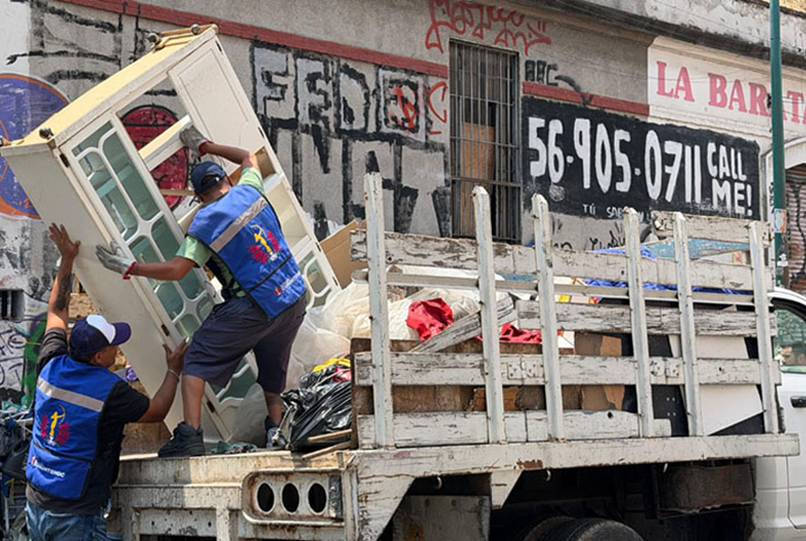 Además de residuos, durante el operativo se retiraron objetos como ropa, calzado, muebles improvisados, utensilios domésticos, cobijas, lonas, colchones, objetos punzocortantes, tapas de coladera, estructuras metálicas y hasta un tablero de básquetbol, que representaban un riesgo para la salud y la seguridad en la vía pública.